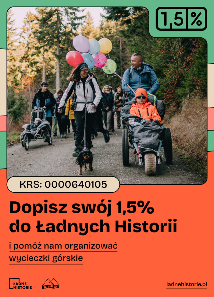 Dzięki Twojemu 1,5% podatku możemy organizować kolejne wyjazdy, zapewnić wsparcie wolontariuszy, aby każdy mógł poczuć magię gór. To nic nie kosztuje – 1,5% to część podatku, którą i tak oddajesz państwu, ale możesz też zdecydować o przekazaniu tej kwoty na wskazany cel.
