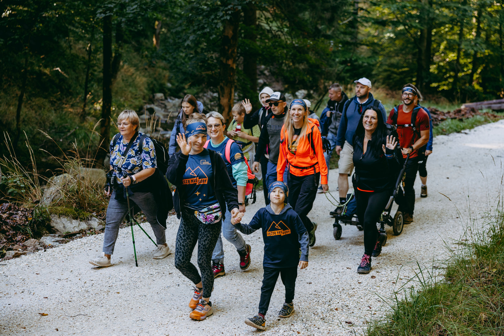 Za nami kolejny rok w górach. Kiedy zbieramy wszystko w całość, aż trudno uwierzyć, ile razem zrobiliśmy! zdjęcie: Michał Kacprzak Wycieczki rodzinne W tym sezonie zdobyliśmy najwyższy szczyt – Śnieżnik (1424 m n.p.m.) i łącznie przeszliśmy 74,7 km górskich tras. Z ogromną radością przyjęliśmy 31 osób z niepełnosprawnościami, które