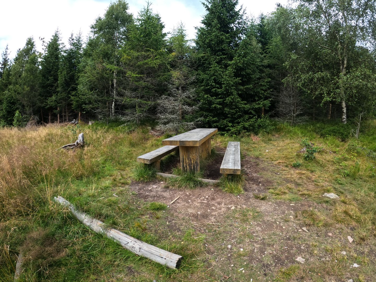 - Stół i ławy do siedzenia mniej więcej w połowie trasy na szczyt